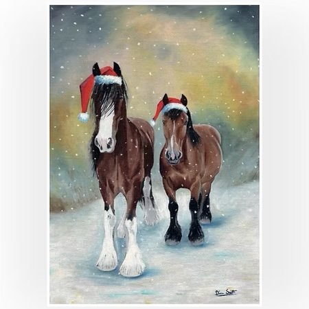 10-Pack Christmas Cards: Featuring two exclusive, beautifully illustrated designs, with 5 cards of each. Uniquely painted and printed just for Northcote Horses!